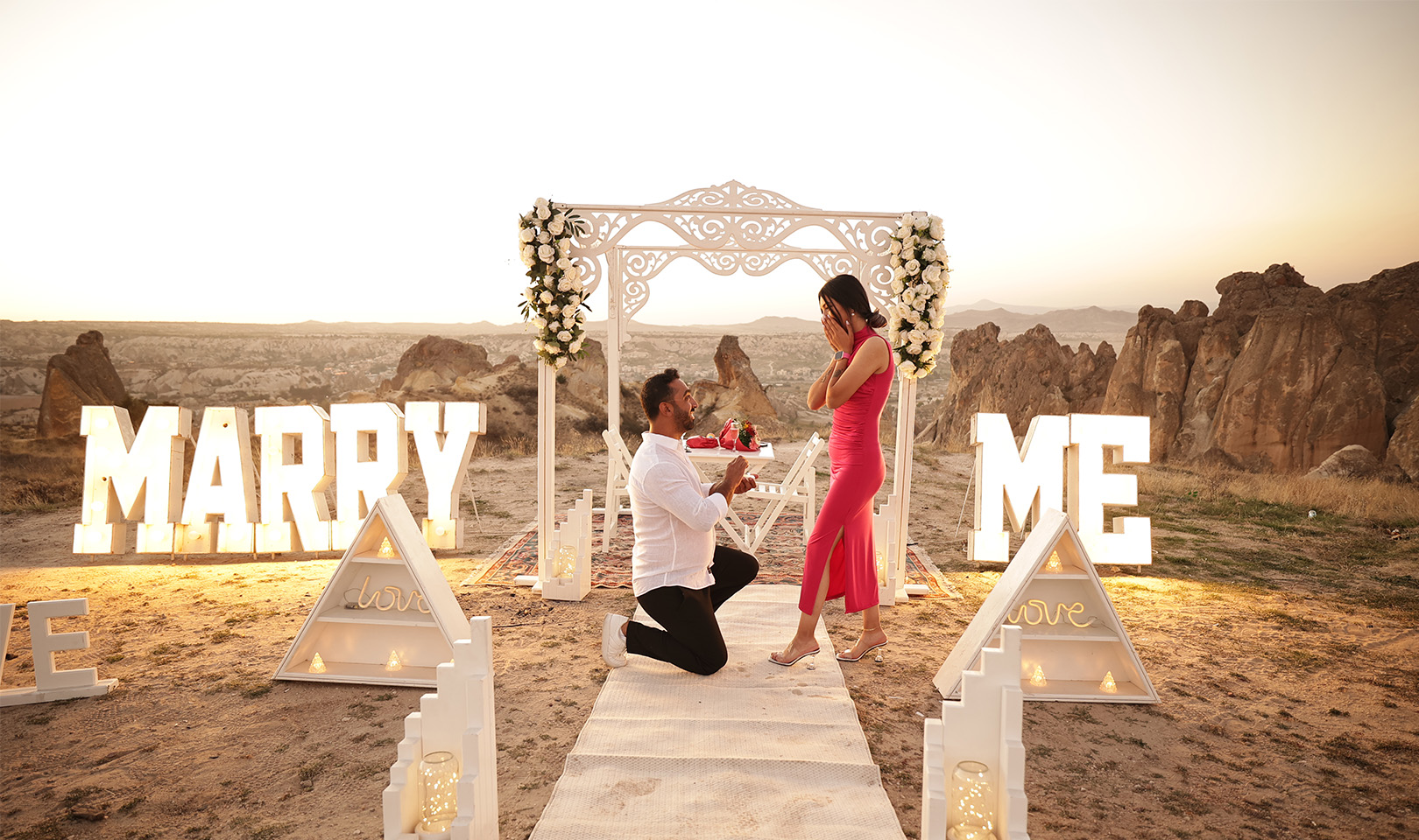 Kapadokya’nın büyüleyici atmosferinde sevdiğinize unutulmaz bir evlilik teklifi yapmaya hazır mısınız? Peribacalarının eşsiz manzarasında, hayatınızın en özel anına anlam katın. Güne muhteşem bir başlangıç yaparak sevginizi ifade edin!