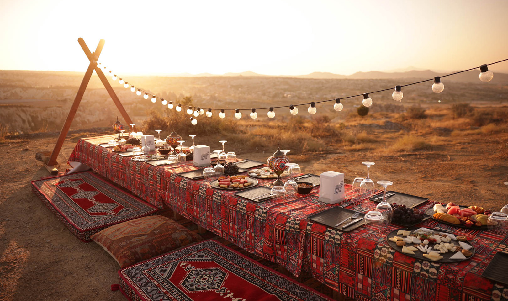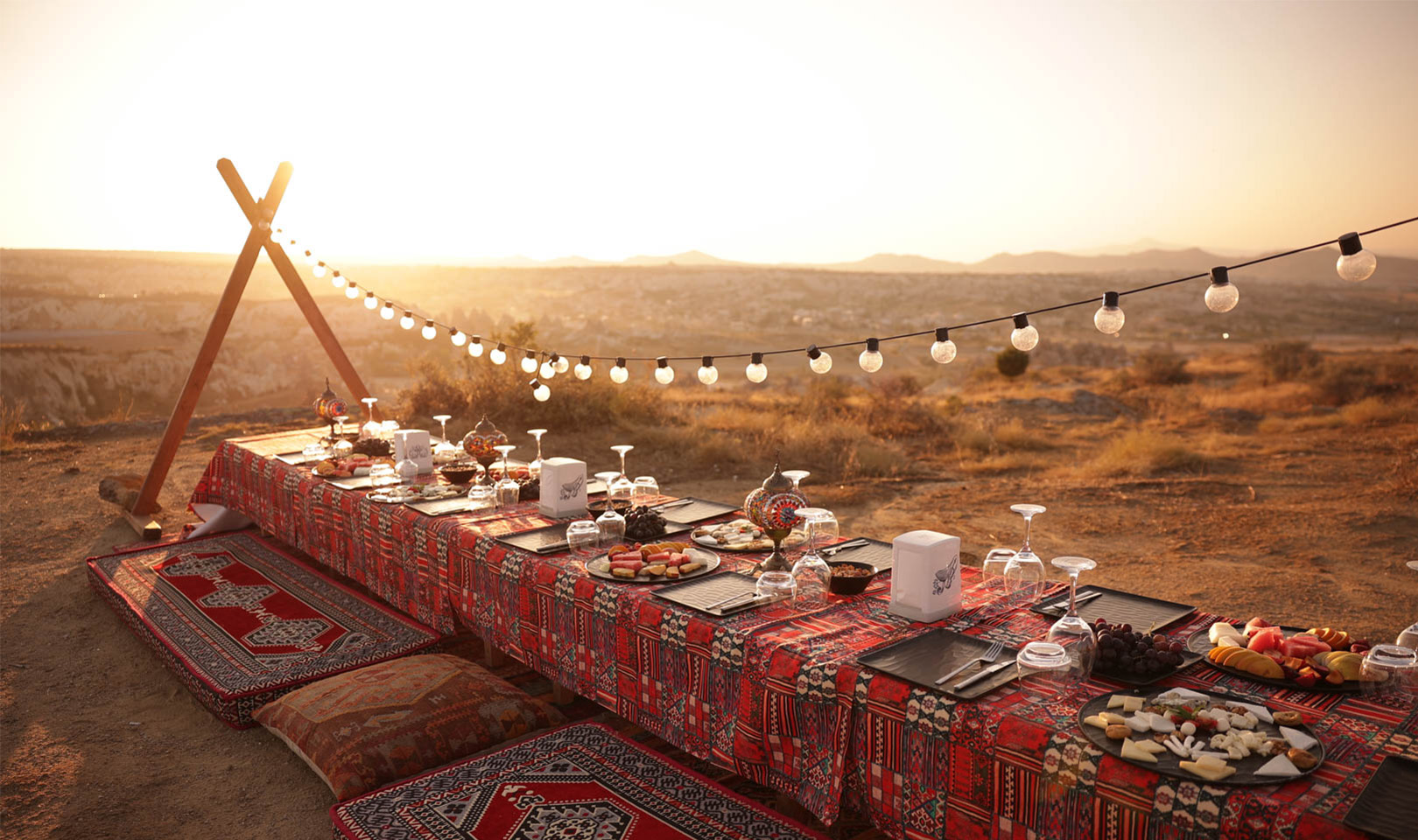 Günbatımı Vadide Piknik Konsepti – Kapadokya’nın Büyüleyici Atmosferinde Unutulmaz Bir Piknik Deneyimi Detaylar Kapadokya’nın mistik vadilerinde, günbatımının büyüleyici renkleri eşliğinde özel bir piknik deneyimi yaşamak ister misiniz? Günbatımı Vadide Piknik Konsepti, doğum günü kutlamaları, özel etkinlikler veya romantik anlar için